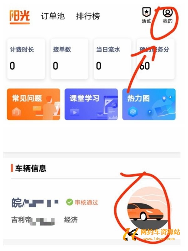 1、在司机端首页点击右上角“我的”图标,进入个人主页后,点击下方的“车辆信息”;