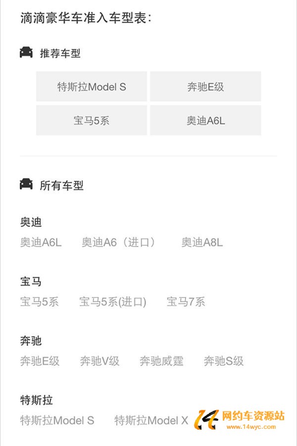 (3)车辆排量过低:滴滴要求车辆的排量达到1.8以上才可以注册,因此很多车型被滴滴清除出了城市车型中。由于每个城市车型要求都不一样,越是大城市要求越高;